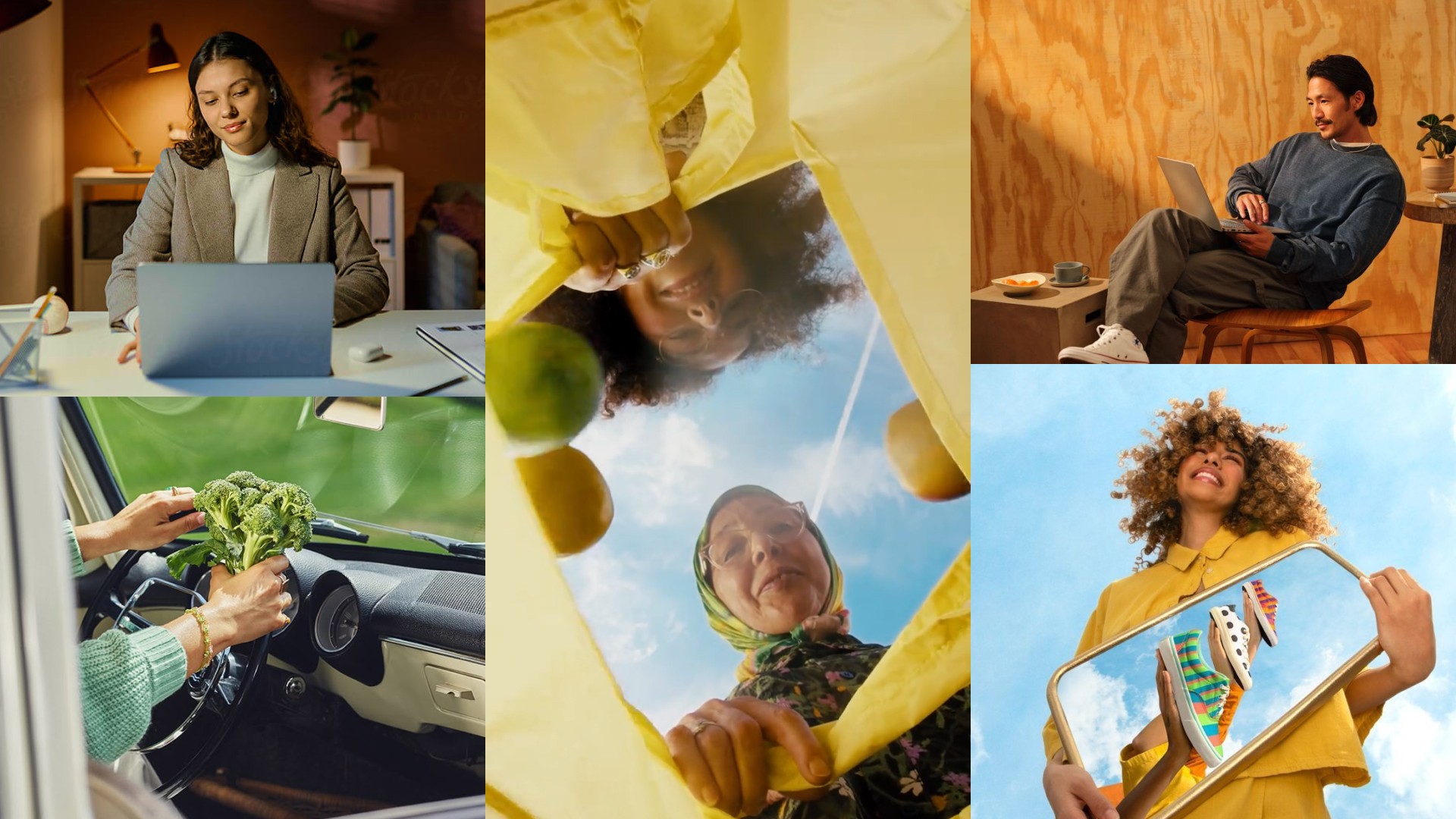 Avoid using overly stock-like photography, we try to make our images as fresh as the brand itself. Our house style is drenched in optimistic, natural light. At the same time, high-contrast shadows or spotlights add a cinematic, editorial feel.